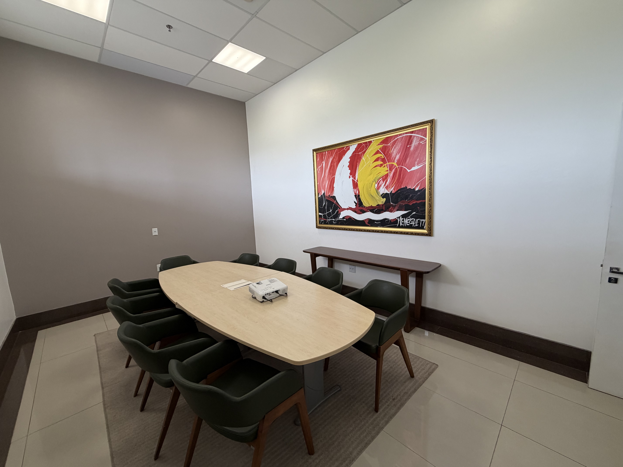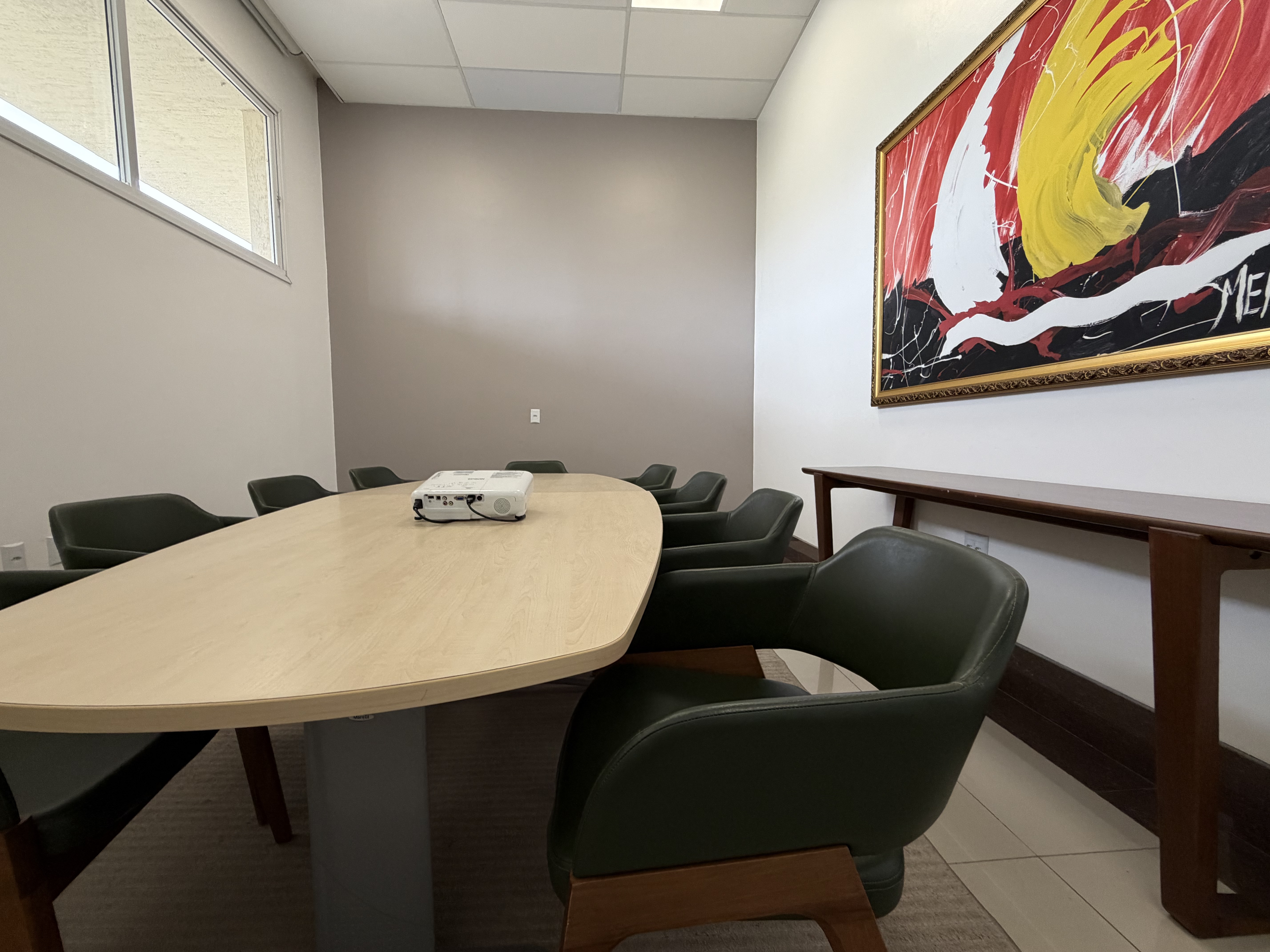 Com capacidade reduzida e ambiente confortável, é ideal para tomadas de decisão, alinhamentos executivos e pequenos grupos que buscam foco, privacidade e eficiência.
